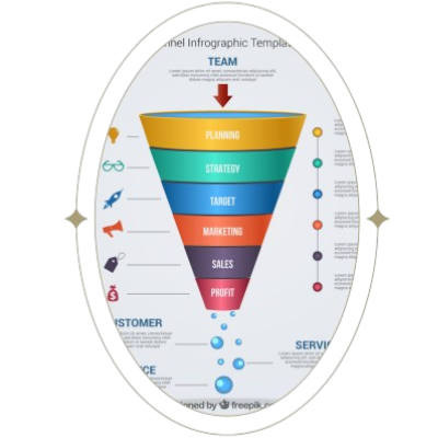 O funil de vendas é o caminho que um potencial cliente percorre desde o primeiro contato com a marca até a decisão final de compra. Ele é dividido em etapas, cada uma com ações específicas para "guiar" o cliente adiante.